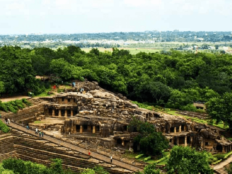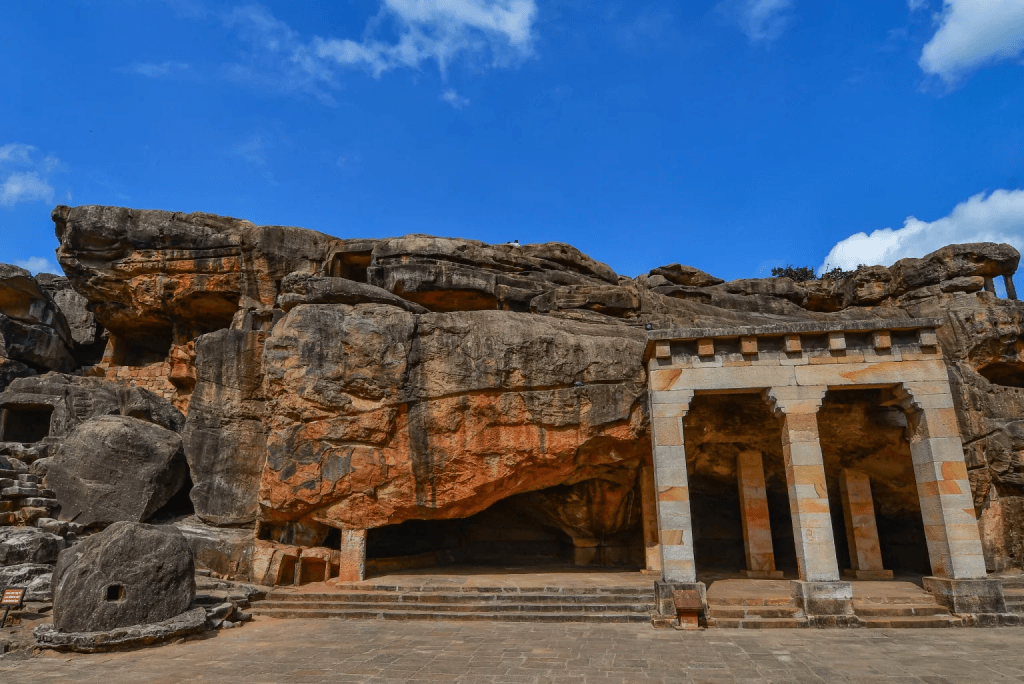 The name Udayagiri translates to “Hill of Sunrise.” As the name suggests, it’s best to start your exploration here in the morning light. This hill houses 18 caves, each with its unique character and charm. The caves are a brilliant example of ancient rock-cut architecture, featuring detailed carvings that depict court scenes, royal processions, hunting expeditions, and mythological tales.